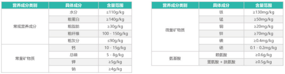 玉米,豆粕,次粉,进口首蓿草粉,酵母粉,磷酸氢钙,食盐,多种维生素和矿物元素等。